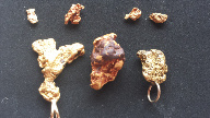 Here is some of the reasons we came over to W A The piece in the middle is really fat and weighs over 1/2 ounce. It has iron stone around it. We have not cleaned it as yet. So you can understand why we are happy about this find. The ones on the left our mind the ones on the right Roberts. The one in the middle team work. (photo’s do not do these justice)