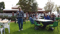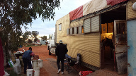 The next morning we all went to Hoover House for BBQ breakfast which costs $2.00 each The wind was cold but the company, the food and the setting was great. It was attached to the old museum which Robert was taken with and the super pit. This is at the ghost town of Gwalia. .